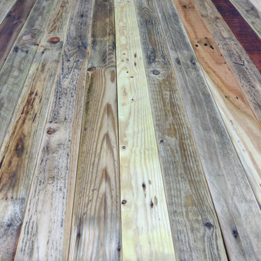 Crafted from reclaimed wood, these rustic planks exude an authentic charm that adds character to any space. Planks are thoughtfully sanded on one side to maintain their genuine rustic appeal while ensuring a safe, smooth surface.